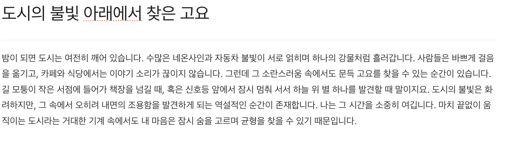 도시의 불빛 아래에서 찾은 고요